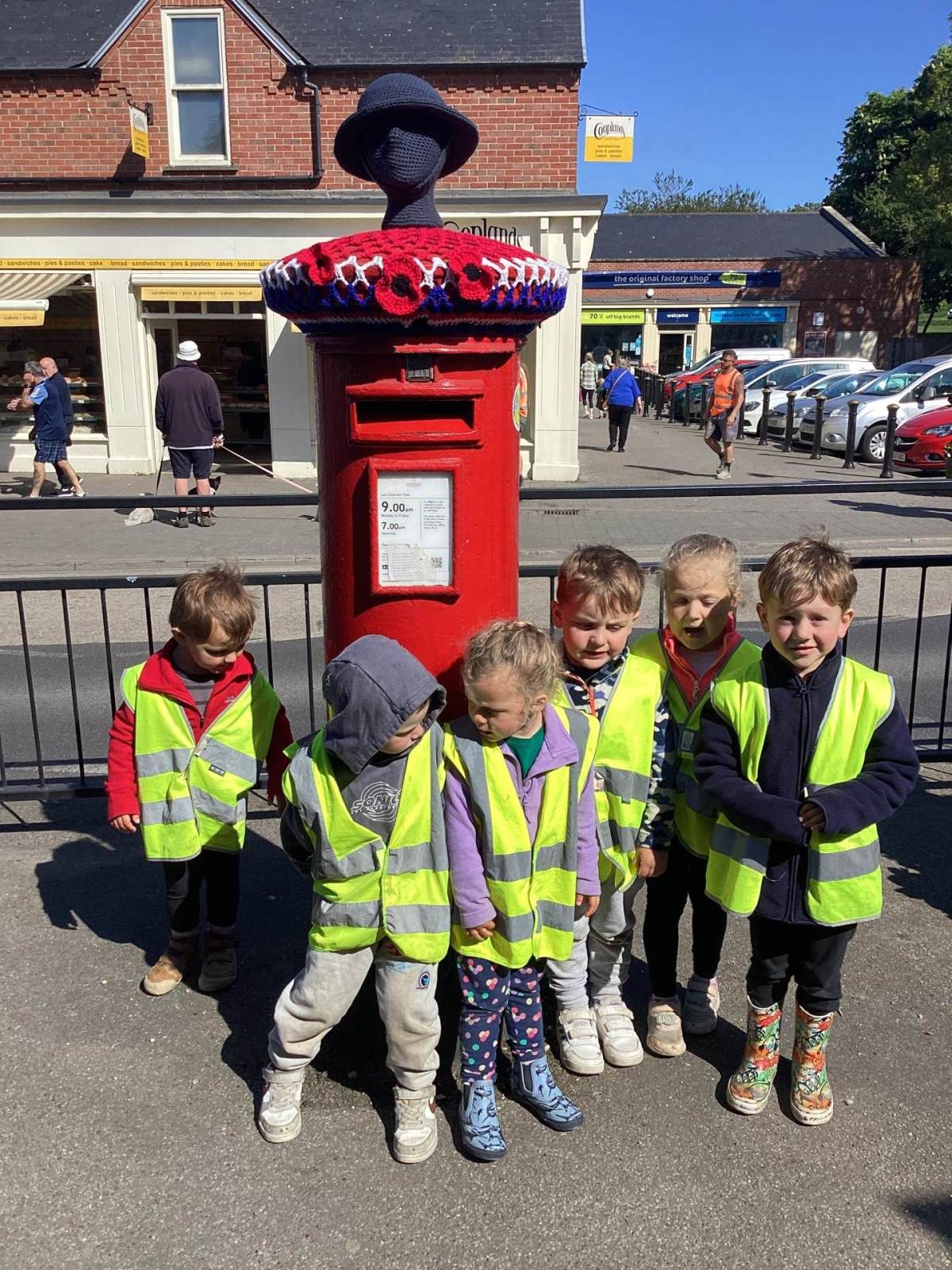 Outdoor Nursery children visited the Memorial Gardens to pay respects and lay the Nursery wreath.