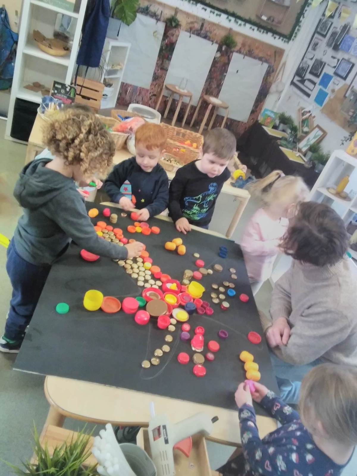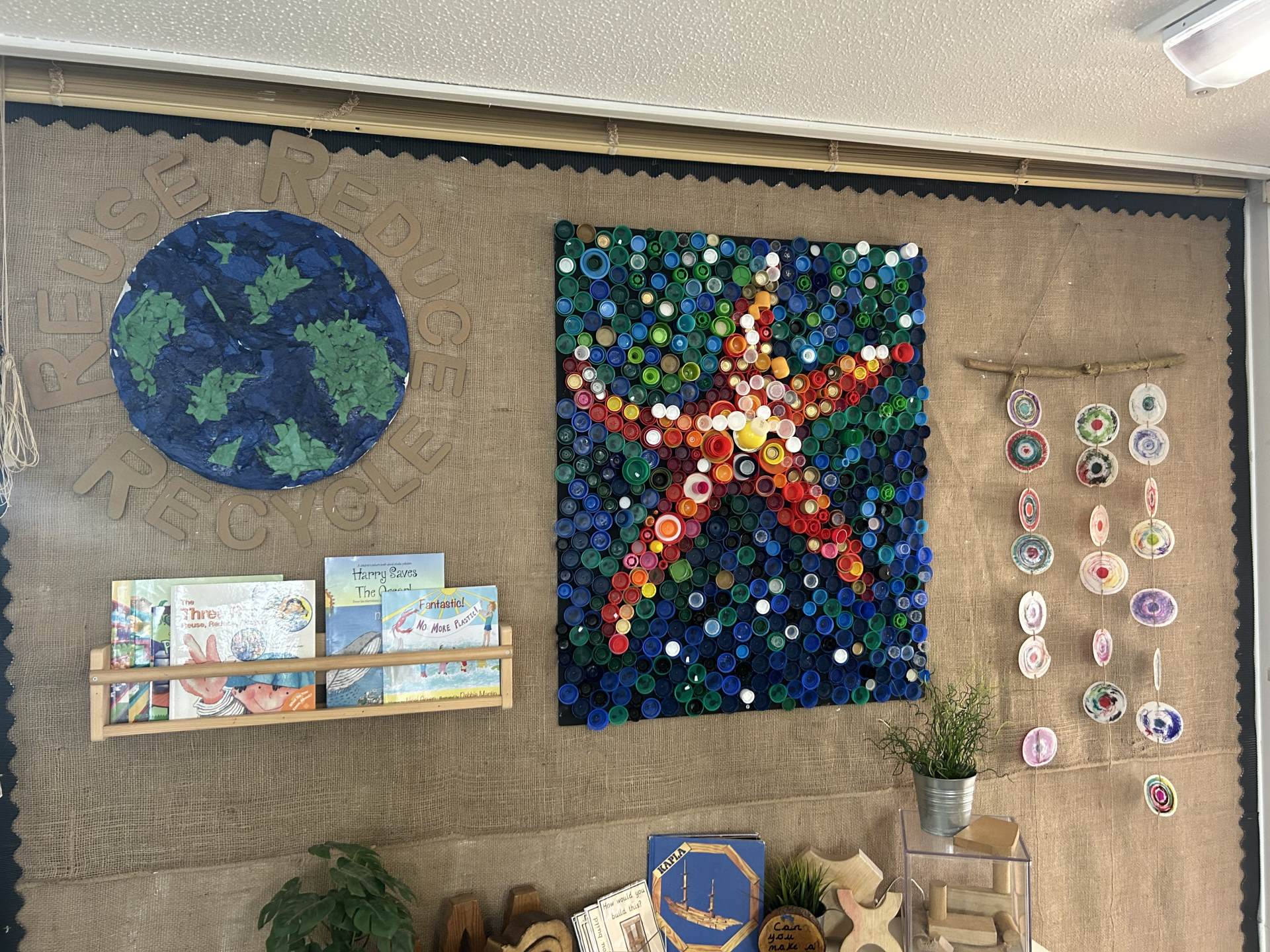 Tom Everard, a local artist, kindly gave up some of his time to create a work of art with the children using recycled materials.