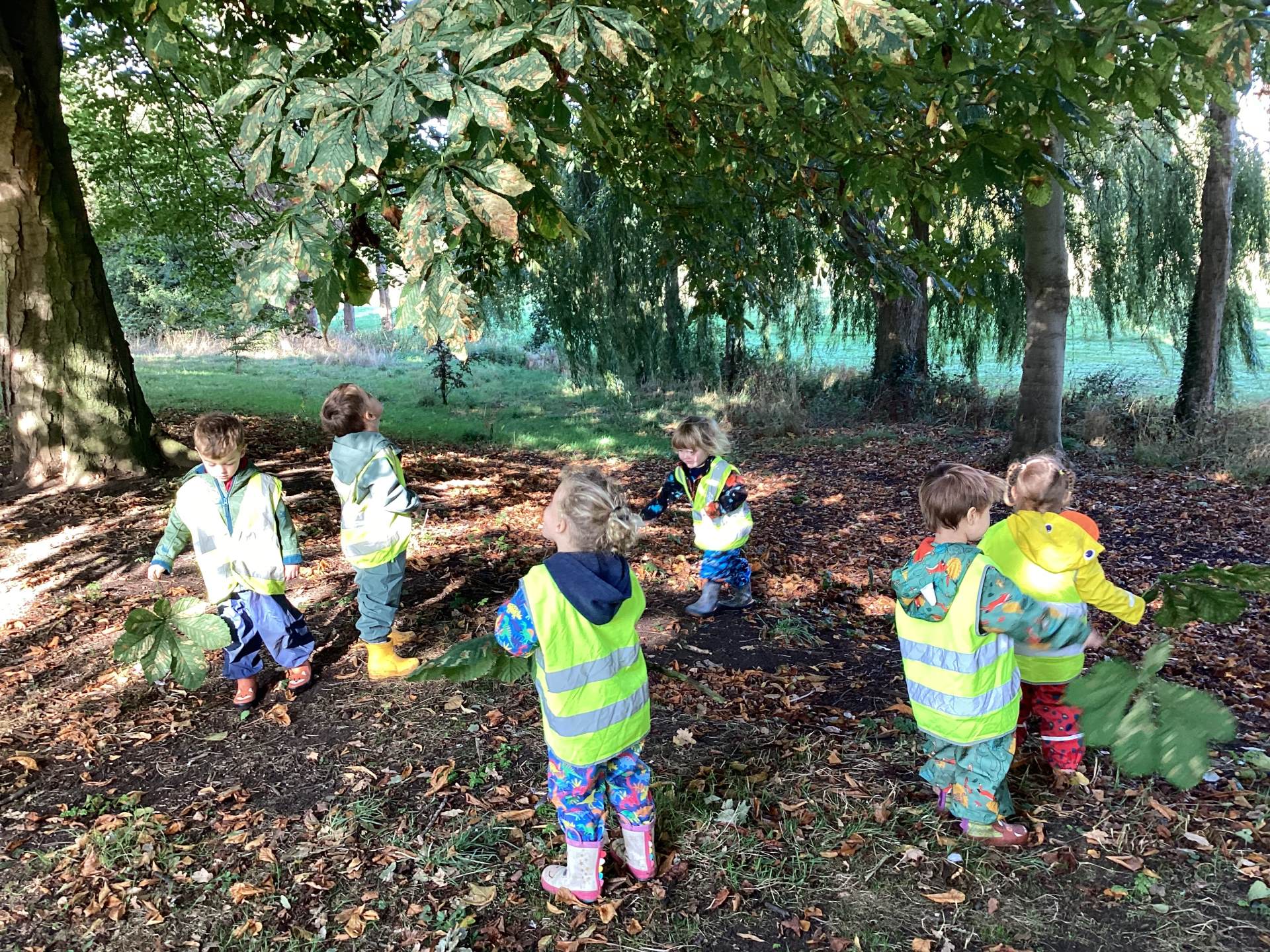 The outdoor nursery children's visit to Hallgarth Park was part of their ongoing study of trees and the seasons. They were able to see the various tree species up close, comparing their leaf shapes, bark textures, and autumn colors. (Autumn 2025)