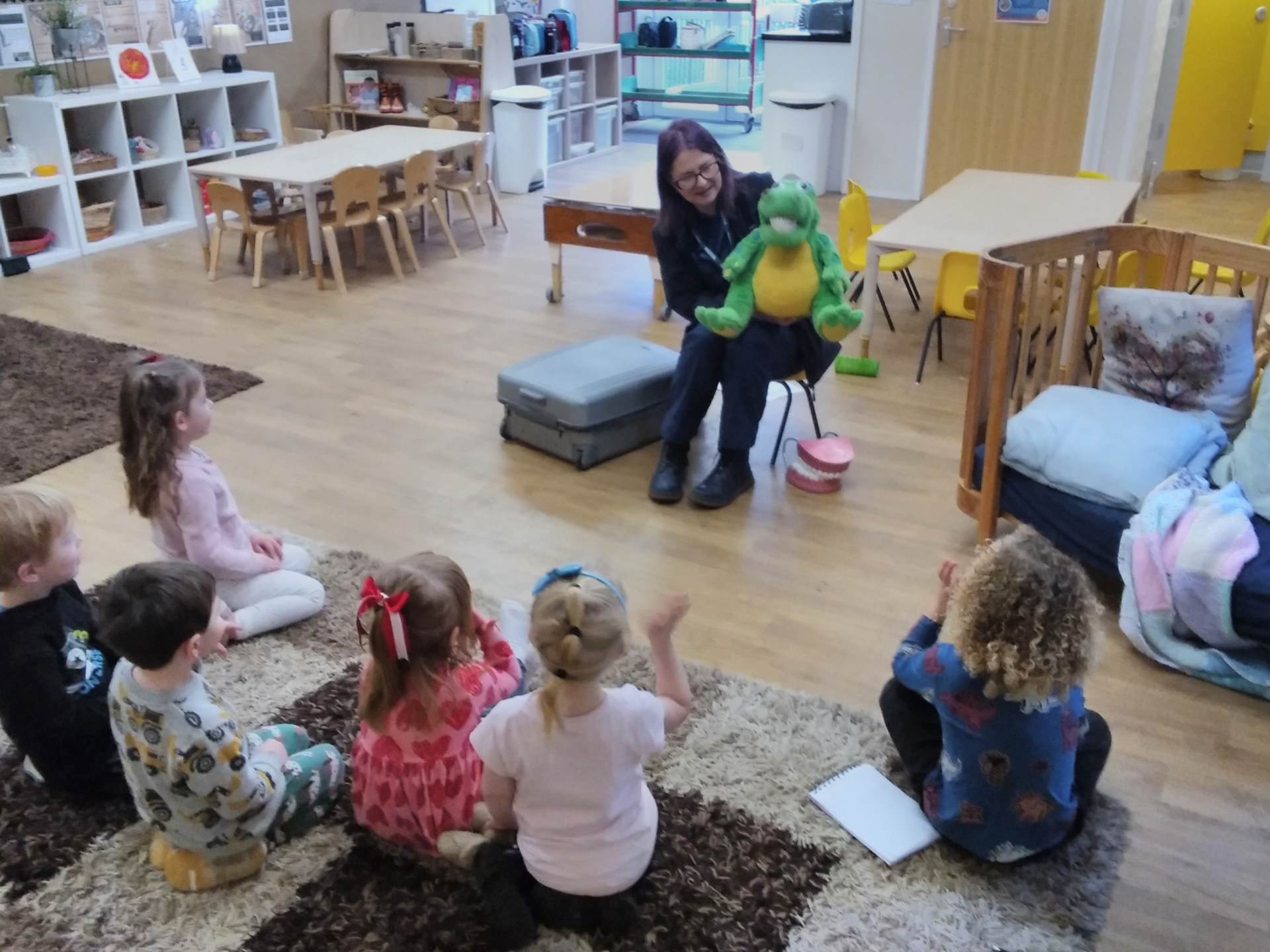 We have had a visit from The City Health Care Team. Tracey spoke to the children about the importance of a good oral care routine and what this looks like.